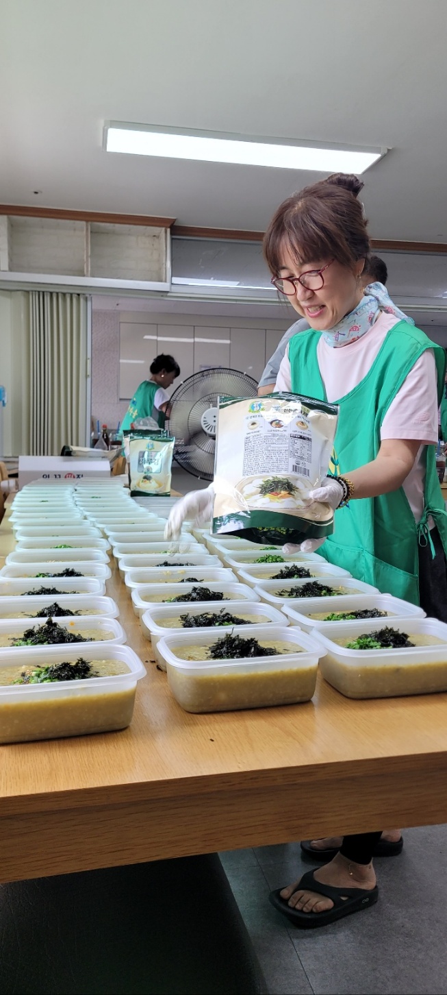 법 1동 새마을 부녀회에서 7/4~7/5 까지 전복죽 나눔 행사를 했습니다. 4일날 전복과 나머지 야채 들을 손질해 놓고 5일 죽을 만들어 법 1동에 있는 각 경로당에 전달했습니다. 더운 날씨에 모두 모여서 기분이 좋았고 즐거운 마음으로 진행했습니다.