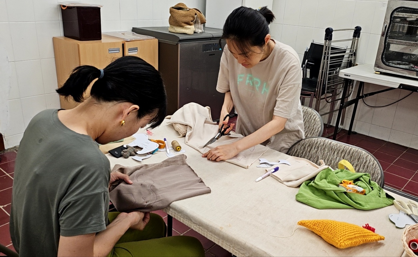 무엇보다 아이들끼리 모여 있으니 밥도 잘먹고, 놀이도 잘해서 엄마들이 작업하기가 수월합니다. 지난번에 이어서 바느질을 시작합니다. 천과 천이 이어지는 부분을 상상하고 재단하는게 쉽지 않습니다. 누군가는 척척 진도를 나가고 누군가는 어떻게 하는거냐고!!! 질문을 백번을 합니다. 백번의 질문을 모두 상냥하게 대답해주는 보살같은 어머님이 계셔서 오늘 모임도 평안하게 잘 진행되었습니다.